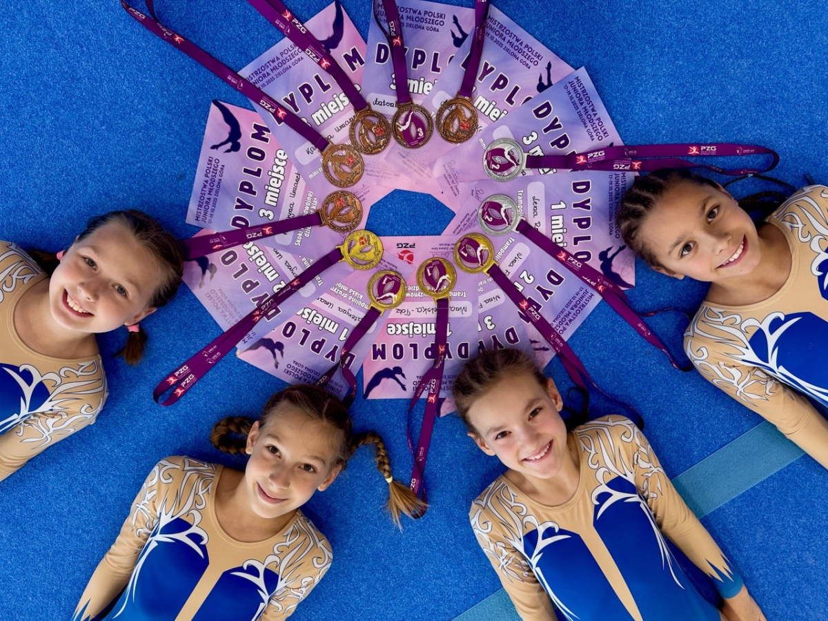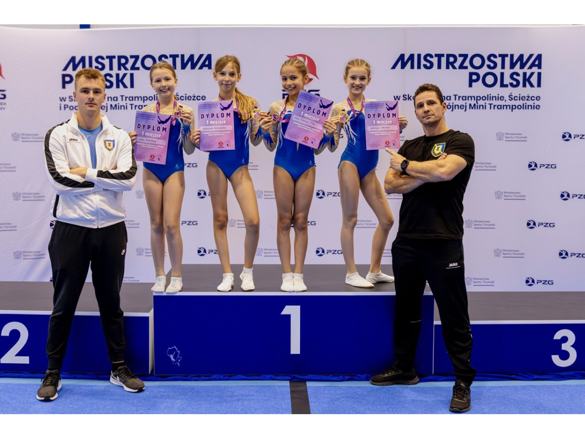 Nasze zawodniczki, które po raz pierwszy, wystąpiły jako drużyna w składzie: Nina Fifielska – Totz, Kateryna Umanets, Lena Romińska i Antonina Karczewska zaprezentowały świetny start i wysoką formę, dzięki temu zakwalifikowały się do ścisłego finału, gdzie do końca, po zaciętej i ostrej rywalizacji zajęły 1 miejsce, zostając Drużynowymi Mistrzyniami Polski w Skokach na Trampolinie.