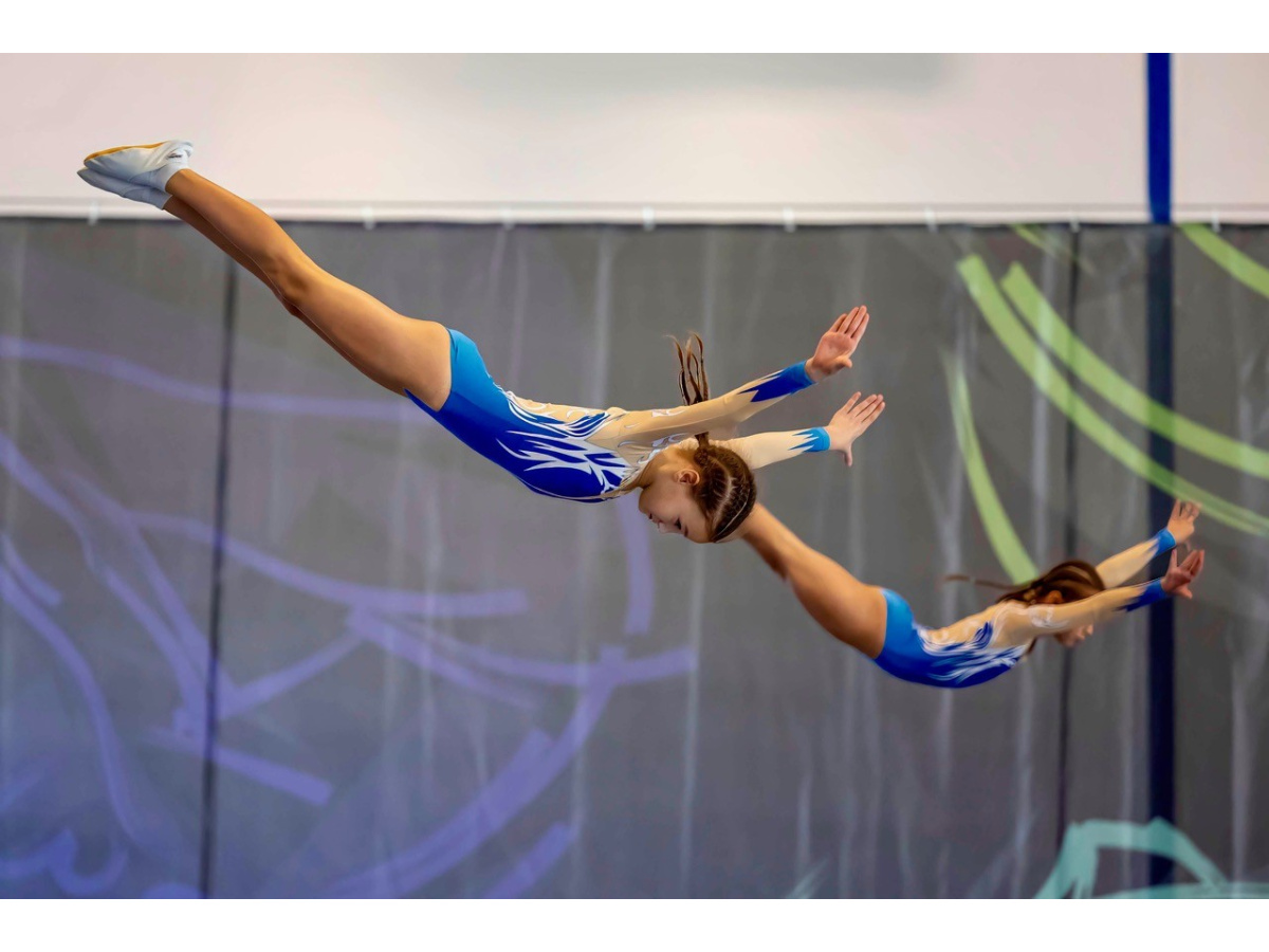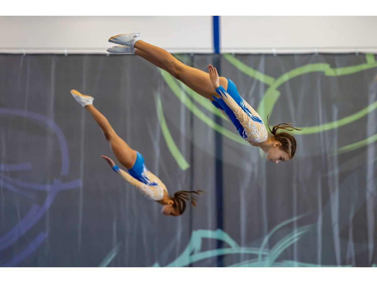 Ta sama drużyna, startując również w podwójnej mini – trampolinie, potwierdziła doskonałą formę sportową, zajmując w finale 3 miejsce. Warto dodać, że indywidualnie, na podwójnej mini – trampolinie, również do ścisłego finału zakwalifikowali się: Kateryna Umanets i Ryszard Jarnath, którzy zajęli odpowiednio 3 i 7 miejsce. Natomiast w synchronicznych skokach na trampolinie nasze zawodniczki w składzie Nina Fifielska – Totz i Kateryna Umanets również sprawiły miłą niespodziankę, zajmując w ścisłym finale 2 miejsce. Na w/w zawodach zaprezentowali się także: Kornelia Tabaczyńska, Michalina Kapłońska, Nadia Zaleta i Filip Kowalik.