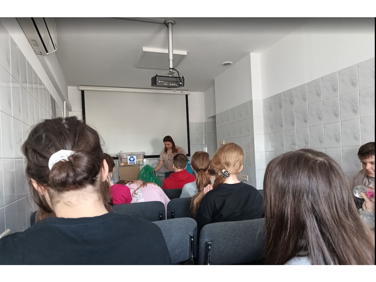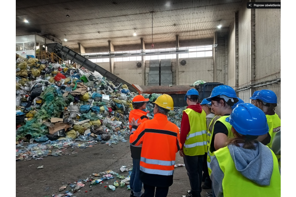 Podczas wizyty uczniowie wzięli udział w interesującej lekcji ekologicznej, w trakcie której poszerzyli swoją wiedzę na temat segregacji odpadów, recyklingu oraz ochrony środowiska.