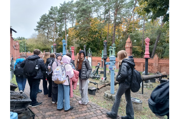 Członkowie koła ekologicznego wraz z opiekunami: Panią Barbarą Jankowską , Gabrielą Kurowską i Martą Wścisłek udali się na wycieczkę do MUZEUM WODOCIĄGÓW przy ulicy Gdańskiej. Uczniowie zobaczyli zabytkowe urządzenia wodociągowe: hydranty, zdroje uliczne i pompy, replikę średniowiecznego rurmusa - urządzenia przed wiekami usytuowanego koło kościoła farnego, za pomocą którego w XVI wieku ponad murem miejskim dostarczano do Bydgoszczy wodę z Brdy. Obejrzeli również współczesne urządzenia: pompy, zasuwy, zawory. Zajrzeli do piętrowego kanału wodno-ściekowego z końca XIX wieku, będącego 15-metrową repliką podobnej budowli, której kilometry skryte są pod ziemią.