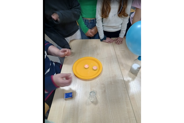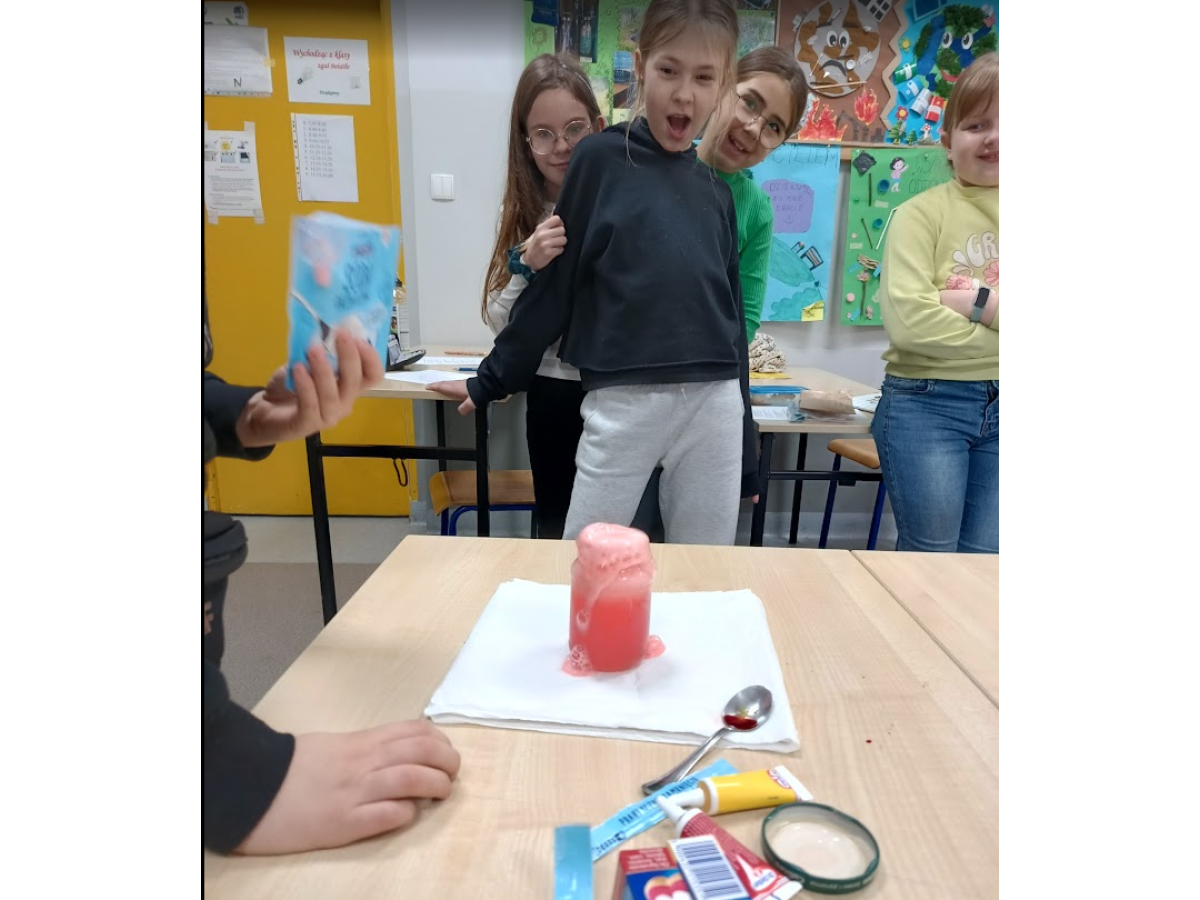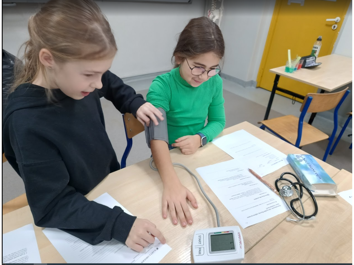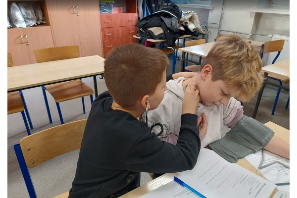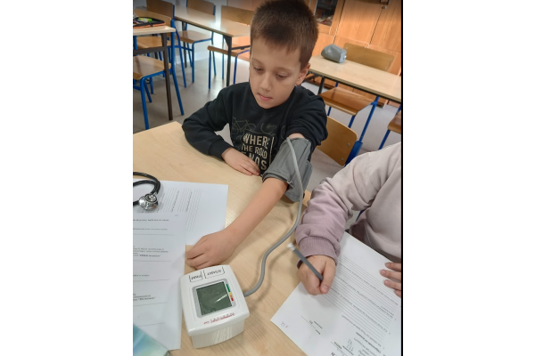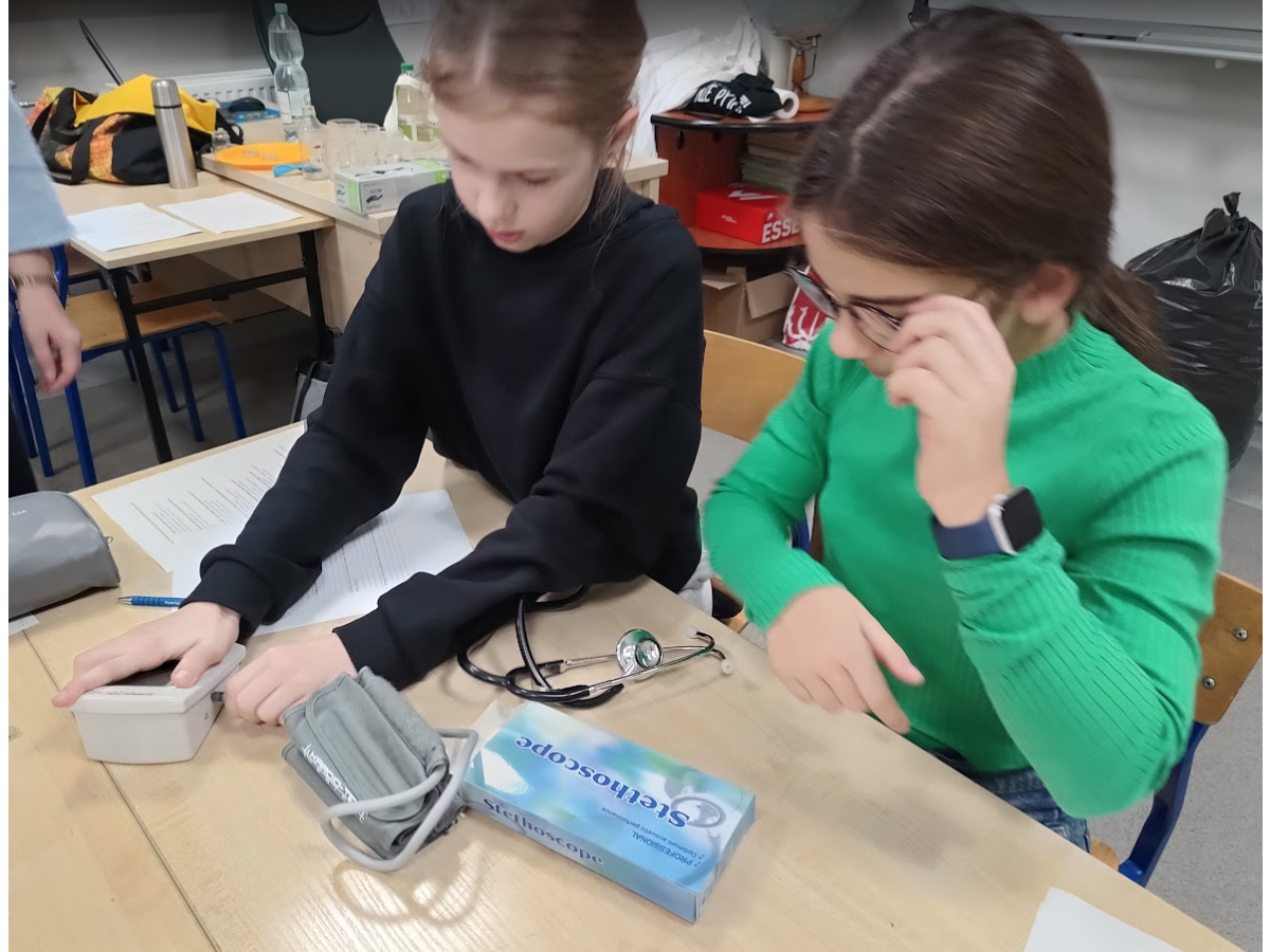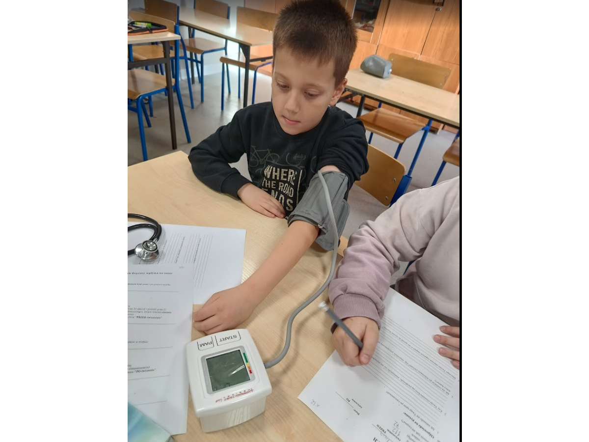Jednym z punktów zajęć było doświadczenie dotyczące pomiaru ciśnienia i tętna przed oraz po wysiłku fizycznym. Dzięki niemu uczniowie mogli zaobserwować, jak praca serca i układu krążenia zmienia się podczas aktywności fizycznej. Następnie część dzieci zaprezentowała własne, samodzielnie przygotowane doświadczenia, które szczegółowo opisała i omówiła przed grupą, był wulkan, lampa olejowa, seler naciowy "pijący" kolorową wodę, pleśń, i proces krystalizacji.