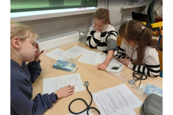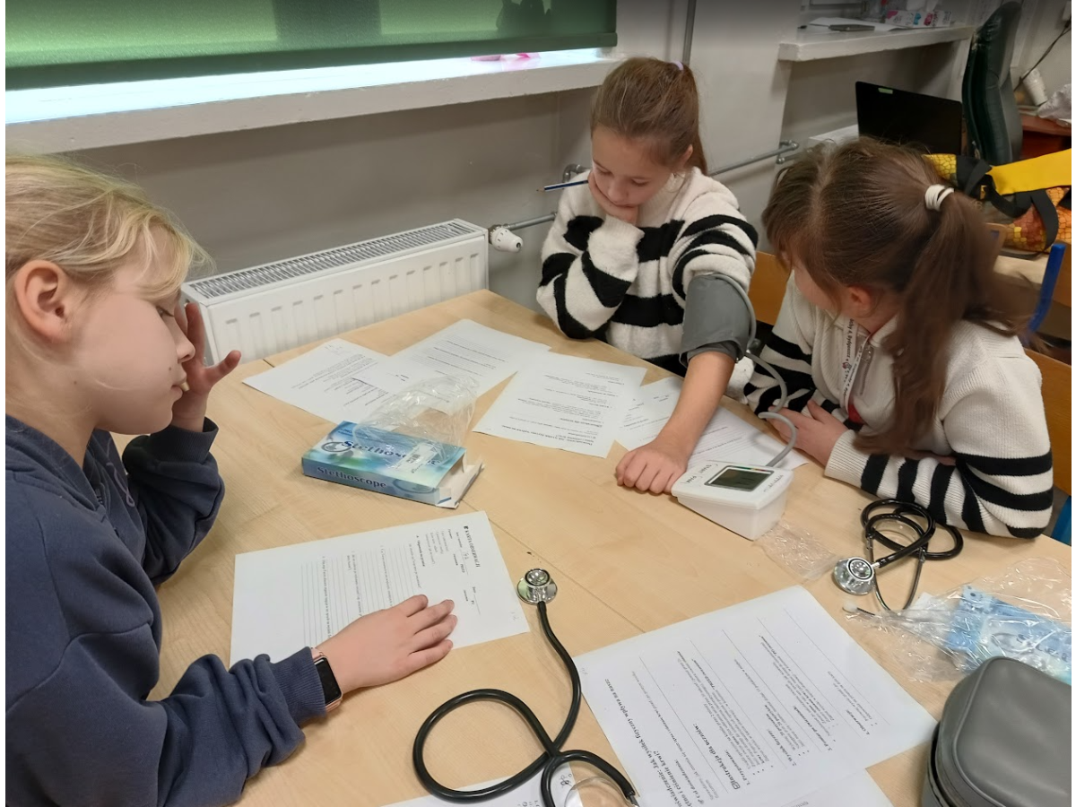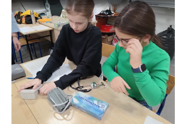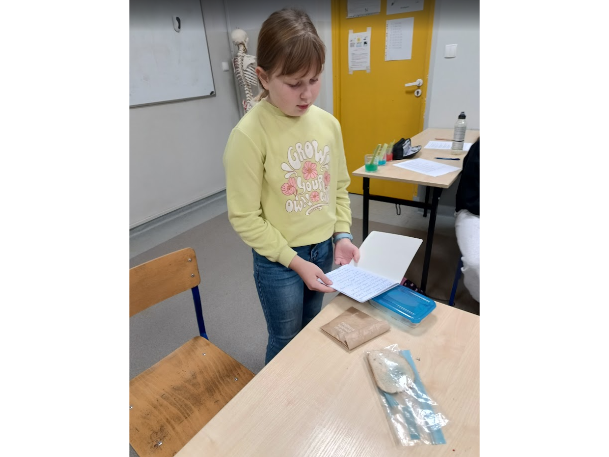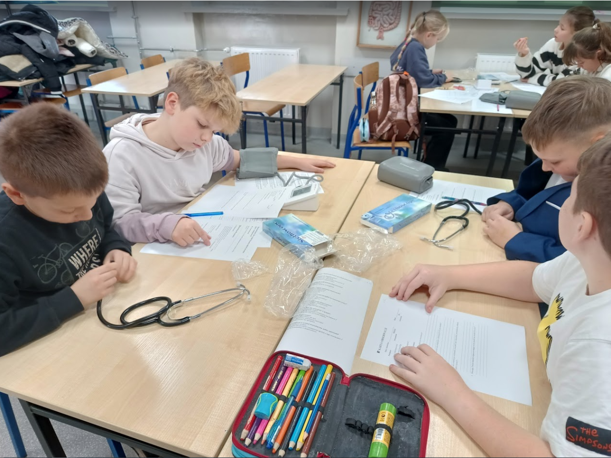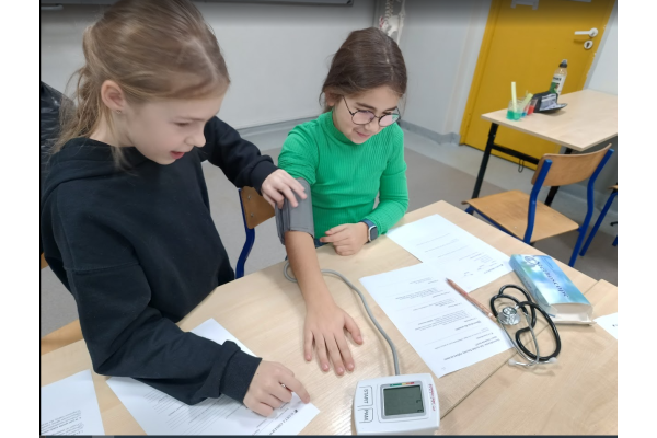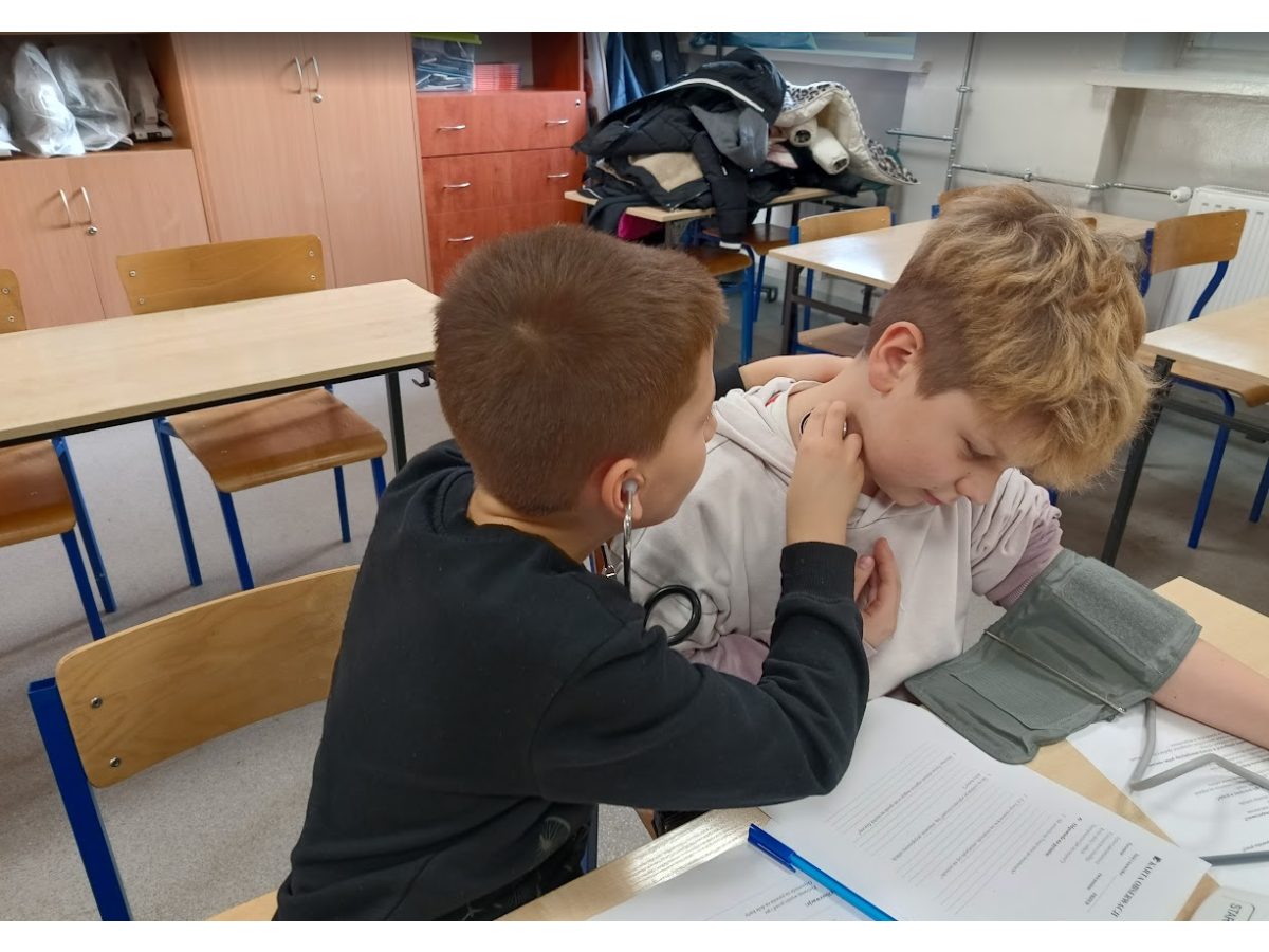 Jednym z punktów zajęć było doświadczenie dotyczące pomiaru ciśnienia i tętna przed oraz po wysiłku fizycznym. Dzięki niemu uczniowie mogli zaobserwować, jak praca serca i układu krążenia zmienia się podczas aktywności fizycznej. Następnie część dzieci zaprezentowała własne, samodzielnie przygotowane doświadczenia, które szczegółowo opisała i omówiła przed grupą, był wulkan, lampa olejowa, seler naciowy "pijący" kolorową wodę, pleśń, i proces krystalizacji.