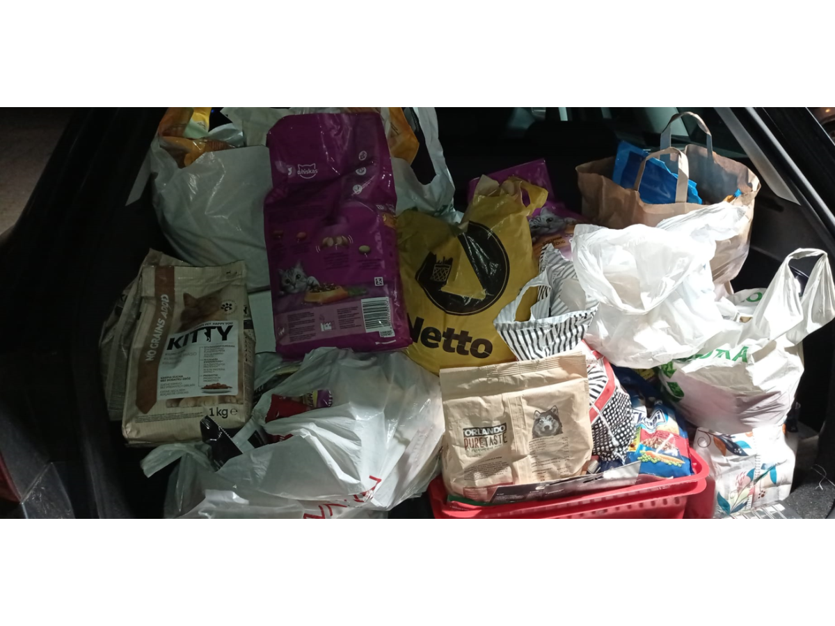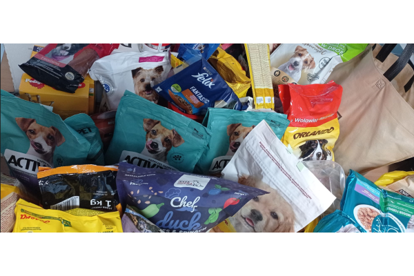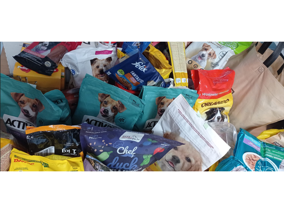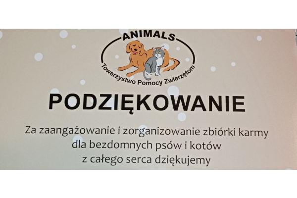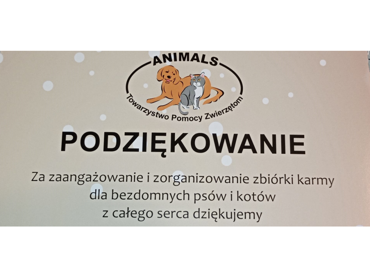 Podziękowanie za zbiórkę karmy dla bezdomnych zwierząt.