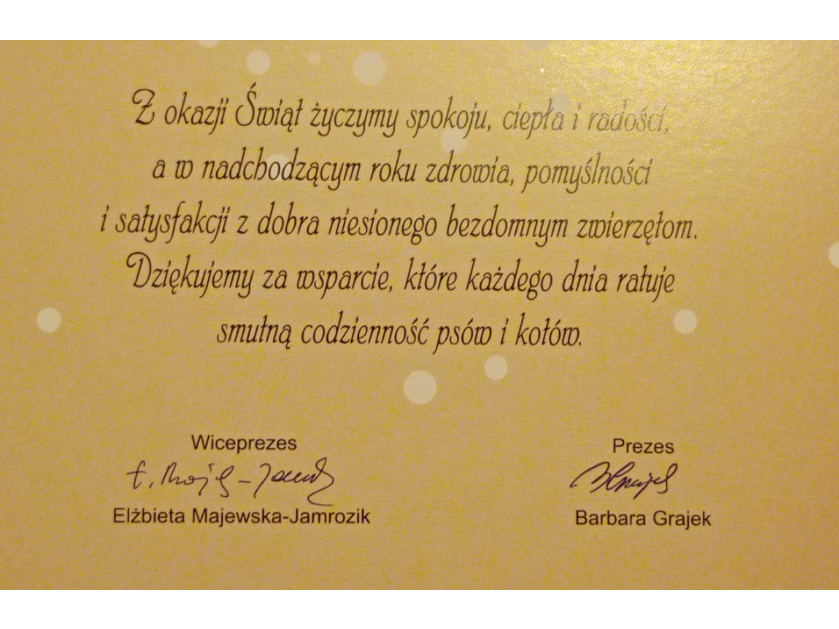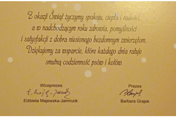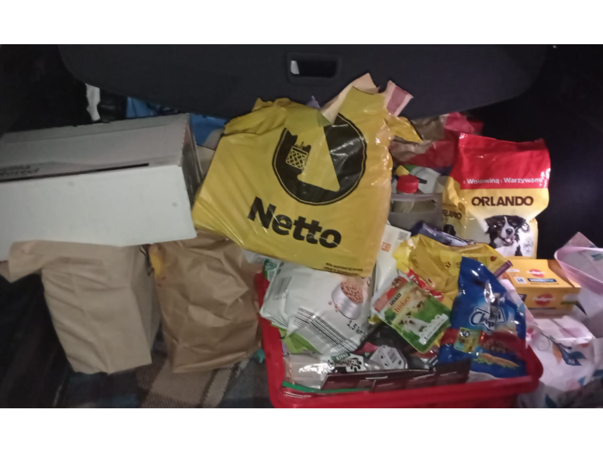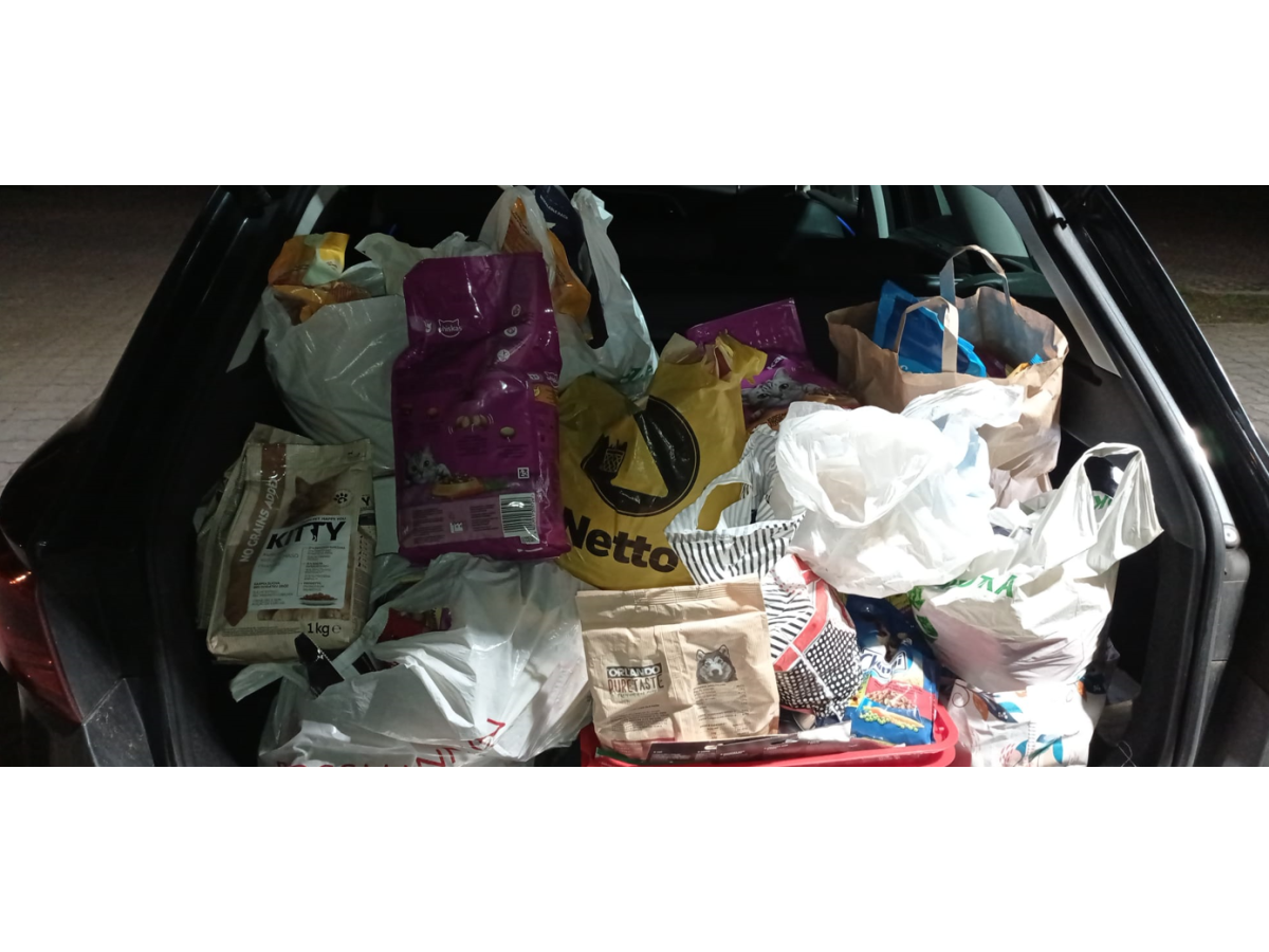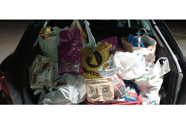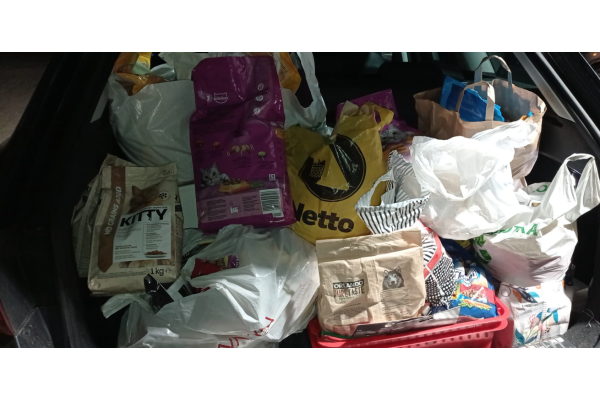 Podziękowanie za zbiórkę karmy dla bezdomnych zwierząt.