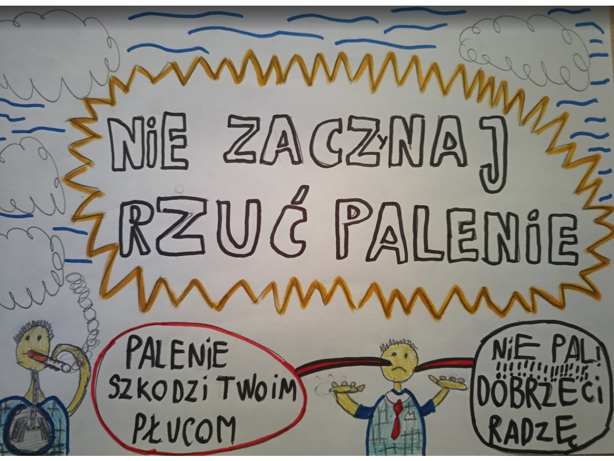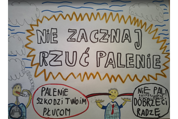 Prace konkursowe wyróżniały się pomysłowością, kolorystyką oraz czytelnym przekazem profilaktycznym. Uczniowie pokazali, że potrafią w przystępny i zrozumiały sposób przekazać ważne informacje dotyczące dbania o zdrowie i unikania niebezpiecznych nawyków.