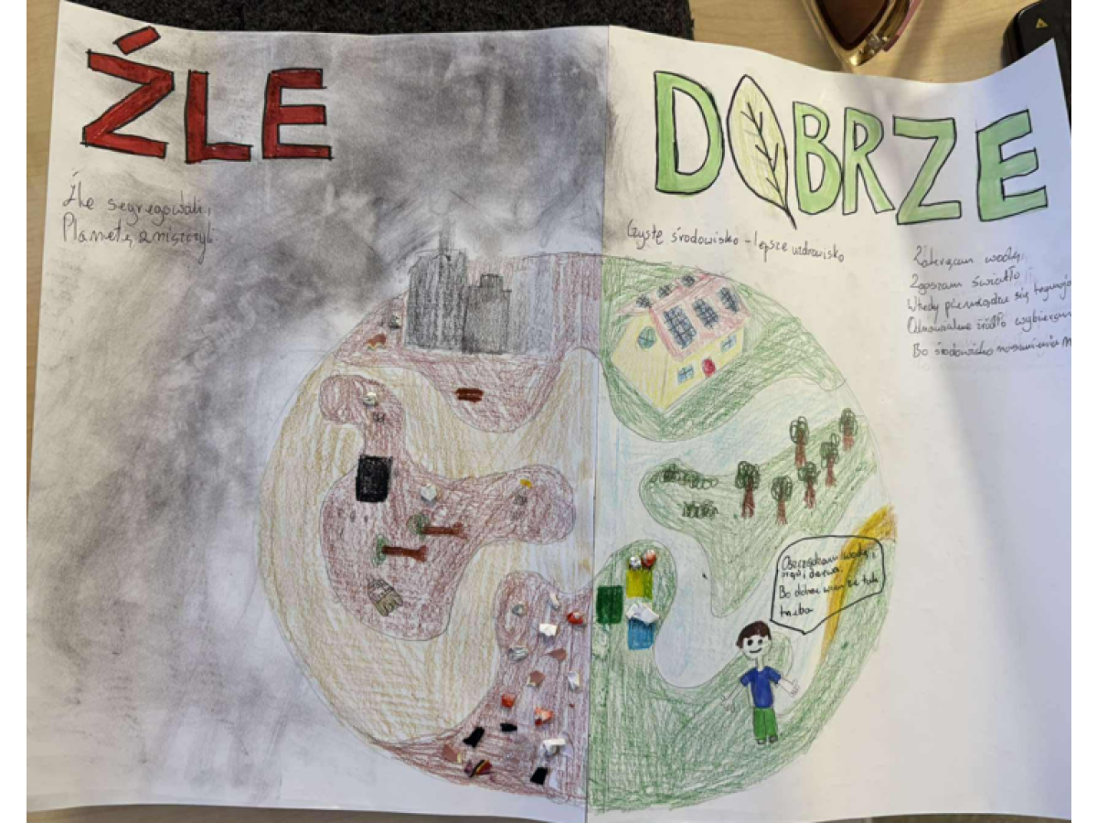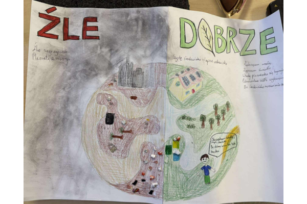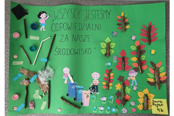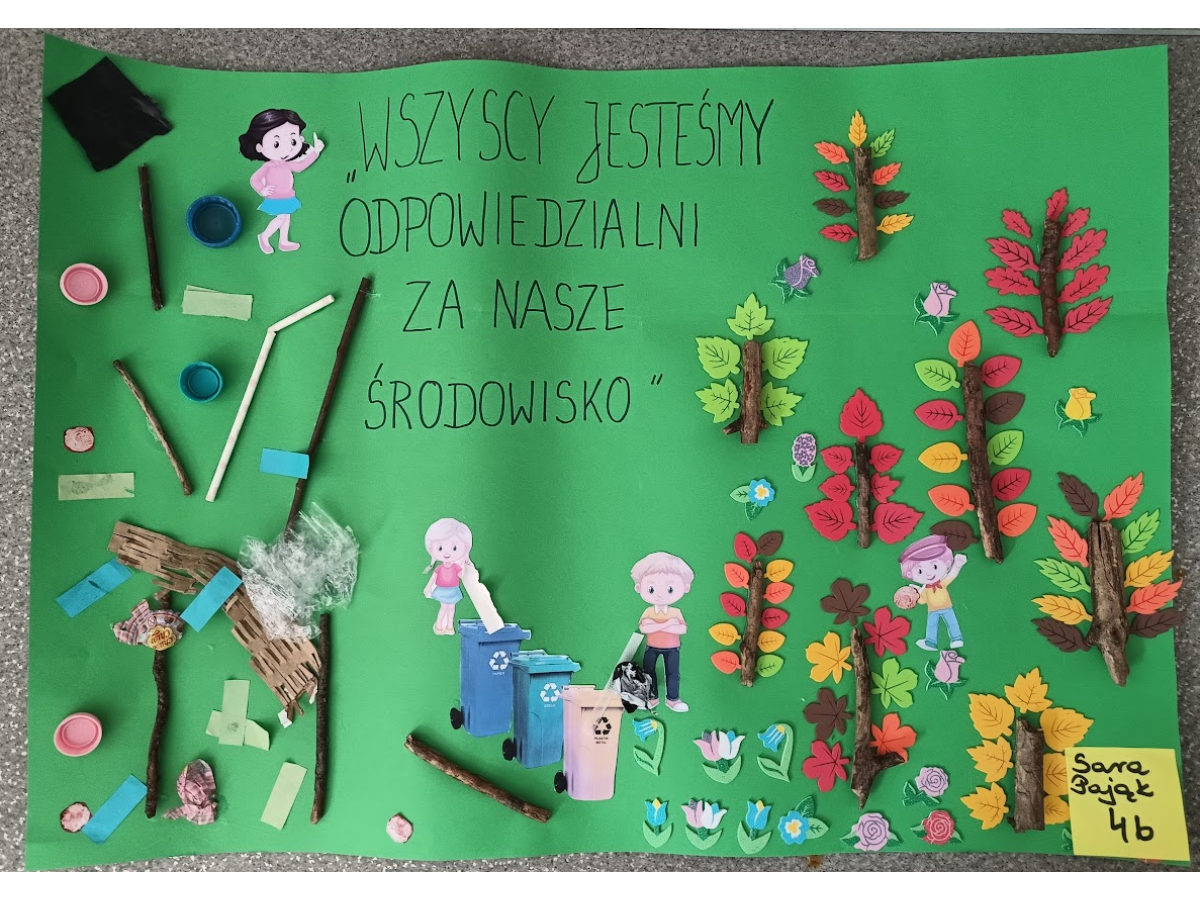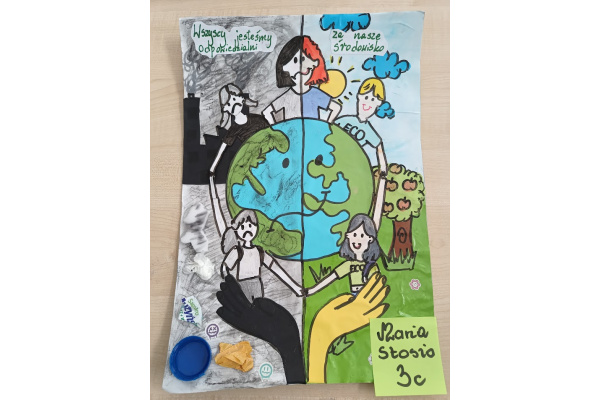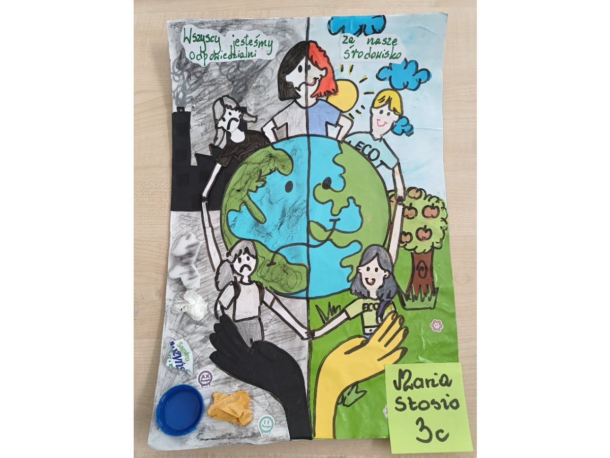 W konkursie należało wykonać plakat i przedstawić na nim działania świadczące o tym, że uczeń a także jego bliscy są odpowiedzialni za środowisko , w którym żyją.