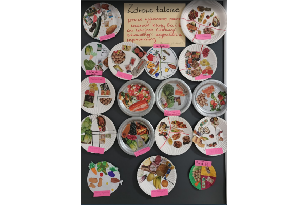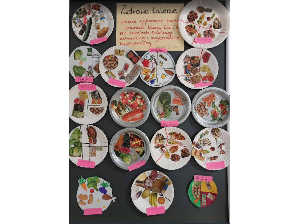 W ramach zajęć edukacji zdrowotnej oraz zajęć z wychowawcą uczniowie klasy 6a i 6c wykonali Zdrowe Talerze.Wykorzystaliśmy wiedzę z zeszłorocznych zajęć z Panią Dietetyk Kliniczną z Polskich Centrów Dietetycznych, która omówiła z dziećmi Talerz Zdrowego Odżywiania. Na zajęciach poznaliśmy zdrowe białka, cukry, tłuszcze i dowiedzieliśmy się w jakich produktach ich szukać. Uczniowie poznali również aplikacje, przy pomocy których mogą sprawdzić czy dany produkt jest zdrowy- jeżeli nie to poznać jego zdrowy zamiennik. Na bazie posiadanej wiedzy powstały kompozycje zdrowych posiłków lub produktów, z których te posiłki można przygotowywać.